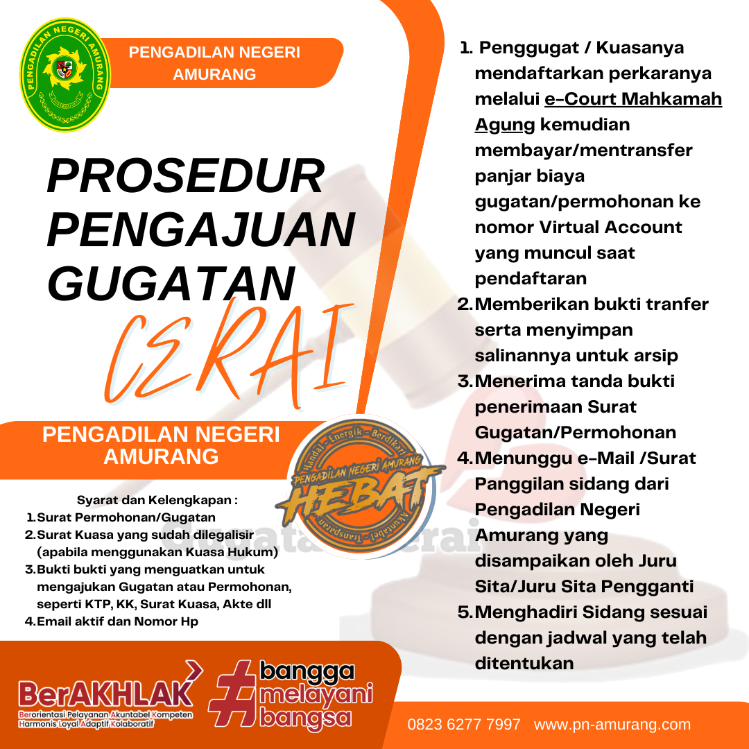 Berikut kami sampaikan prosedur pengajuan gugatan cerai dan panjar biaya cerai di Pengadilan Negeri Amurang tahun 2024