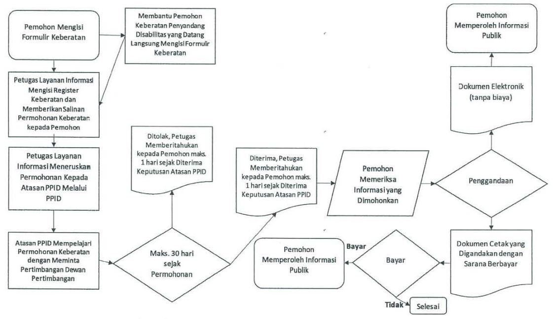 - Dalam hal Pemohon Informasi Publik datang langsung dan merupakan Penyandang Disabilitas maka dapat dibantu oleh Petugas Layanan Informasi dalam pengisian formulir keberatan.